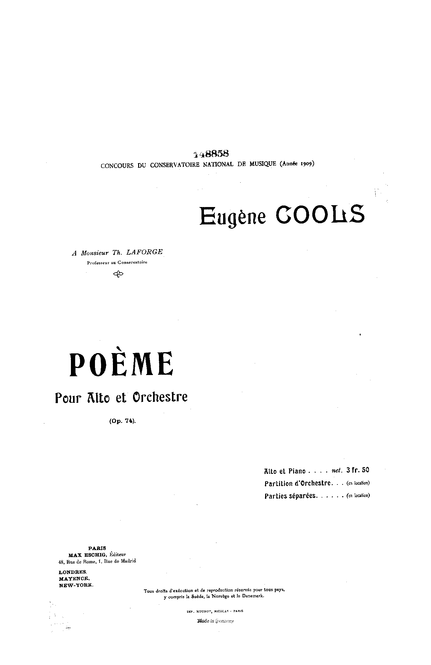 According to BNF, the orchestral version may not have been published until 1934 (which is not to say it wasn't -composed- in full score perhaps in 1909, just that they only have the viola/piano version in print in 1909- the title seems to have been poème pour alto et orchestre in 1909 in any case, unless BNF retroactively changed the title in their catalog.)