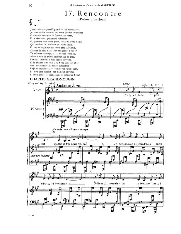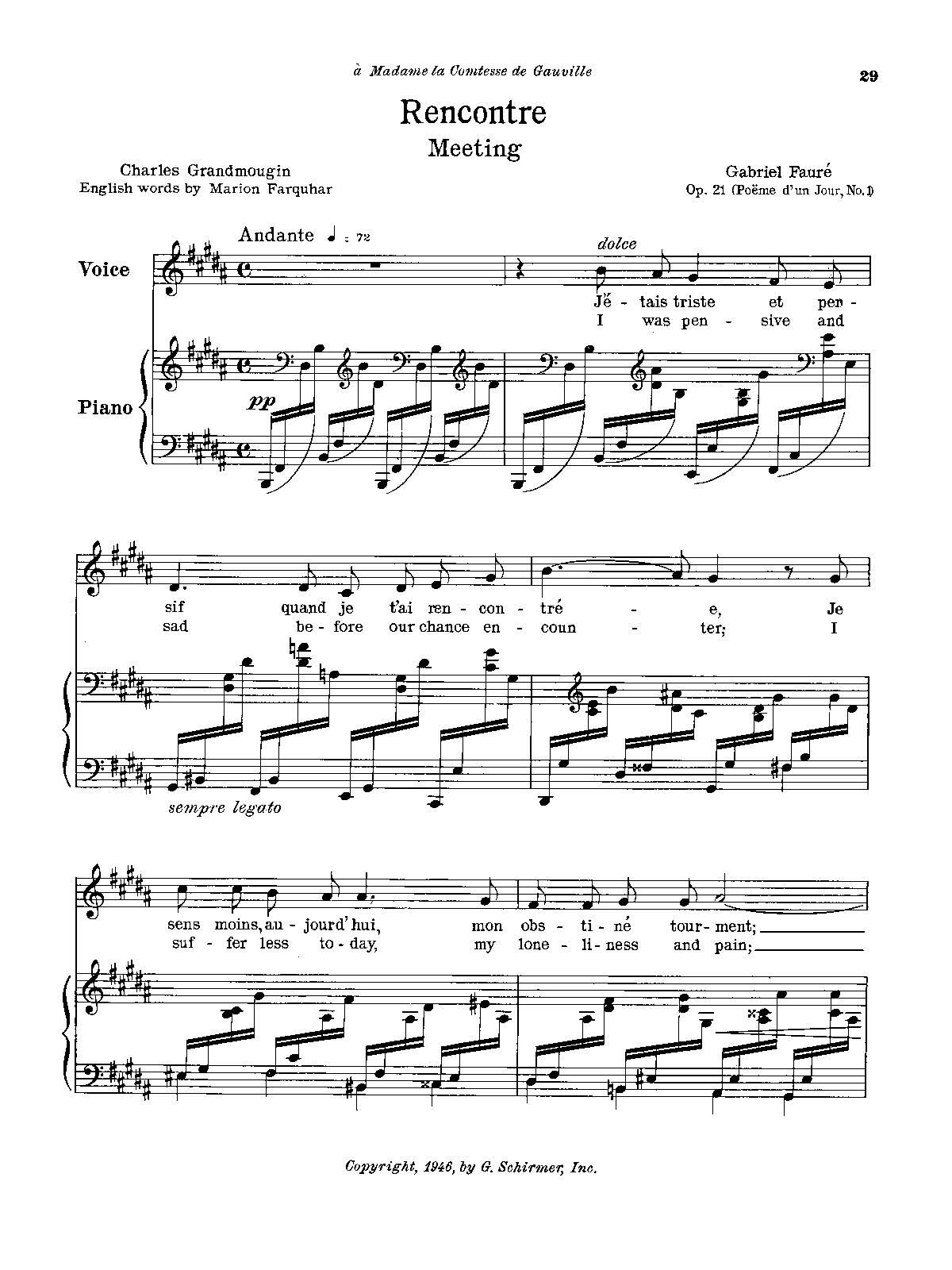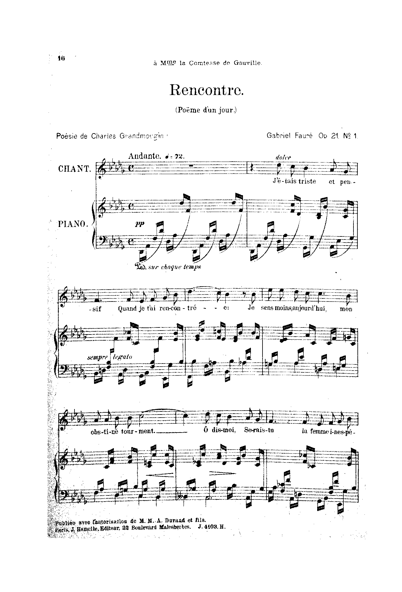 Misc. Notes Keys: Rencontre (D major), Toujours (F minor), Adieu (F major).