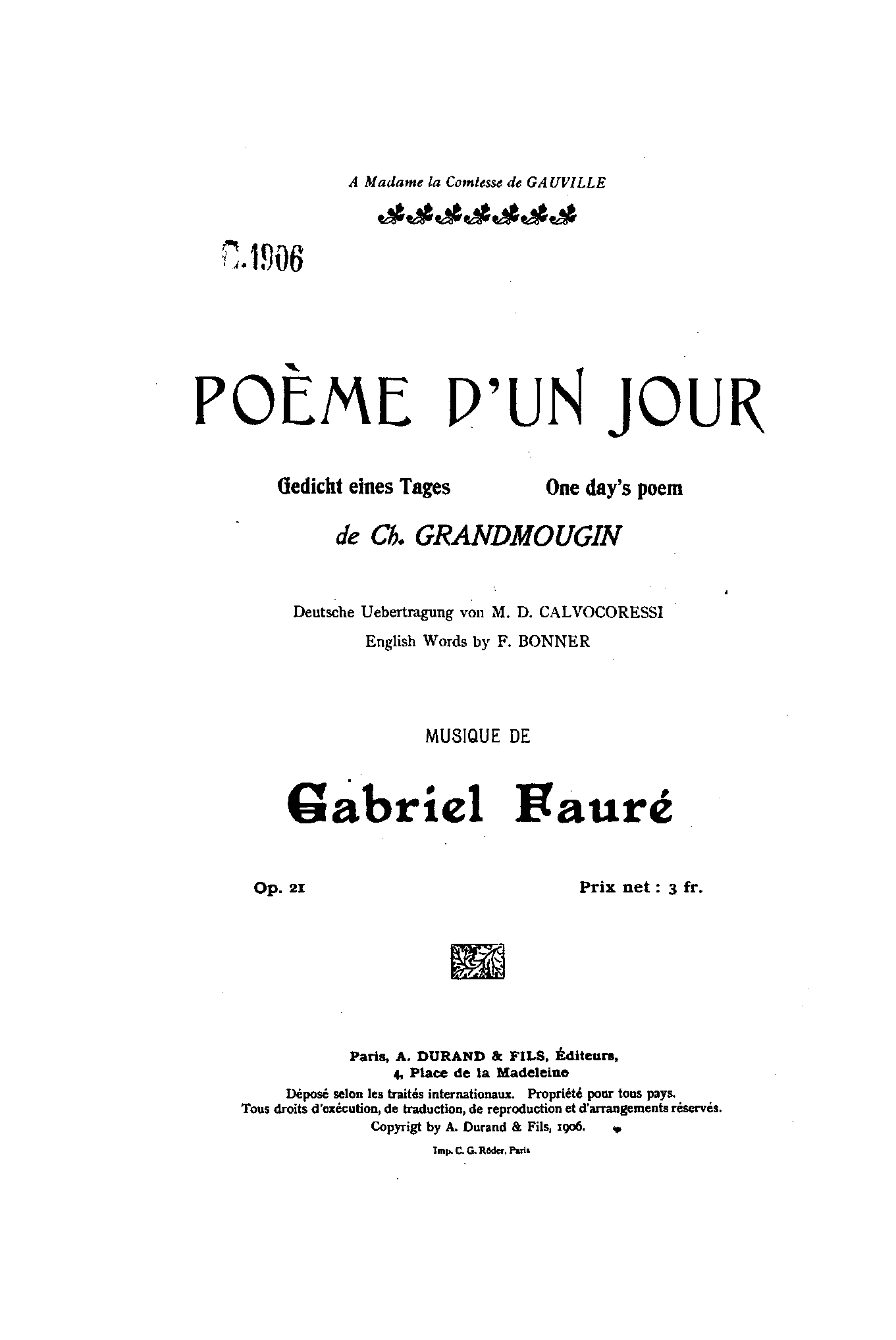 Poème d'un jour, Op.21 (Fauré, Gabriel)