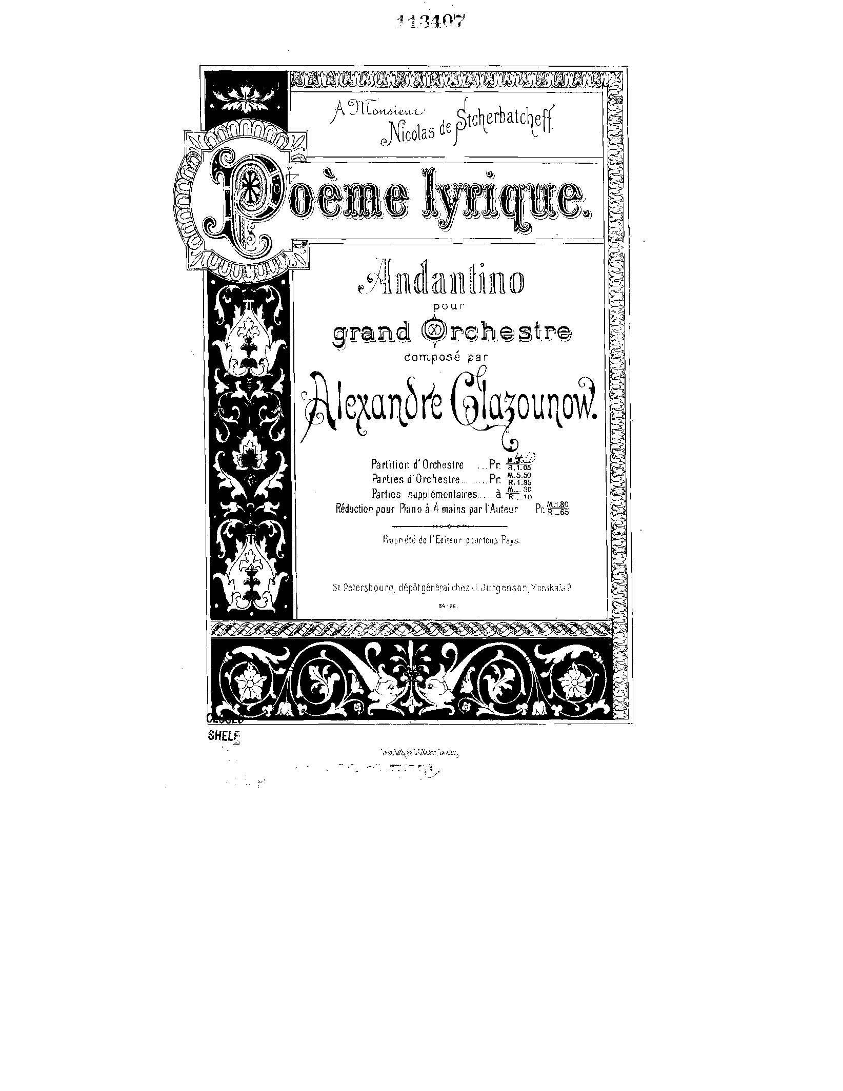 | Alternative. Title | Poème lyrique; Andantino pour grand orchestre |