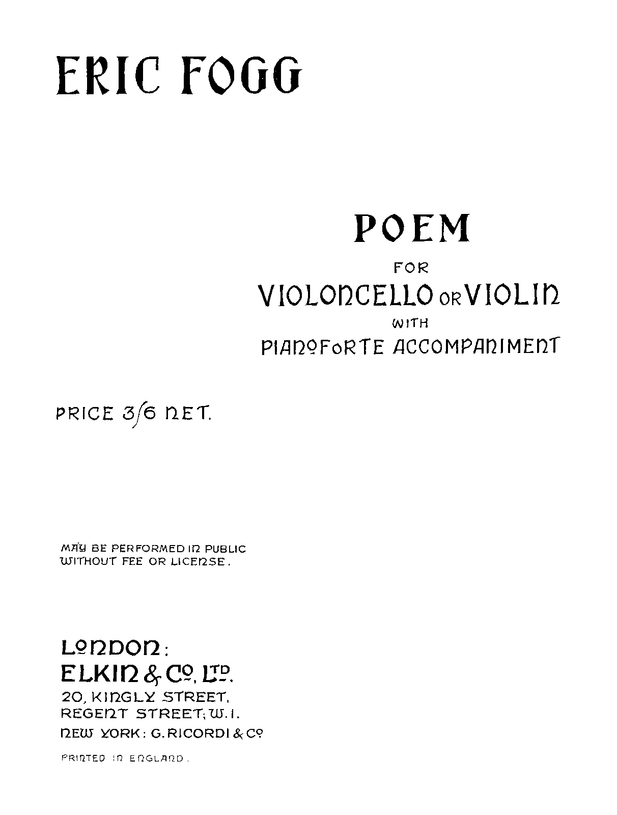 | Alternative. Title | Poem for Violoncello or Violin with Pianoforte Accompaniment |