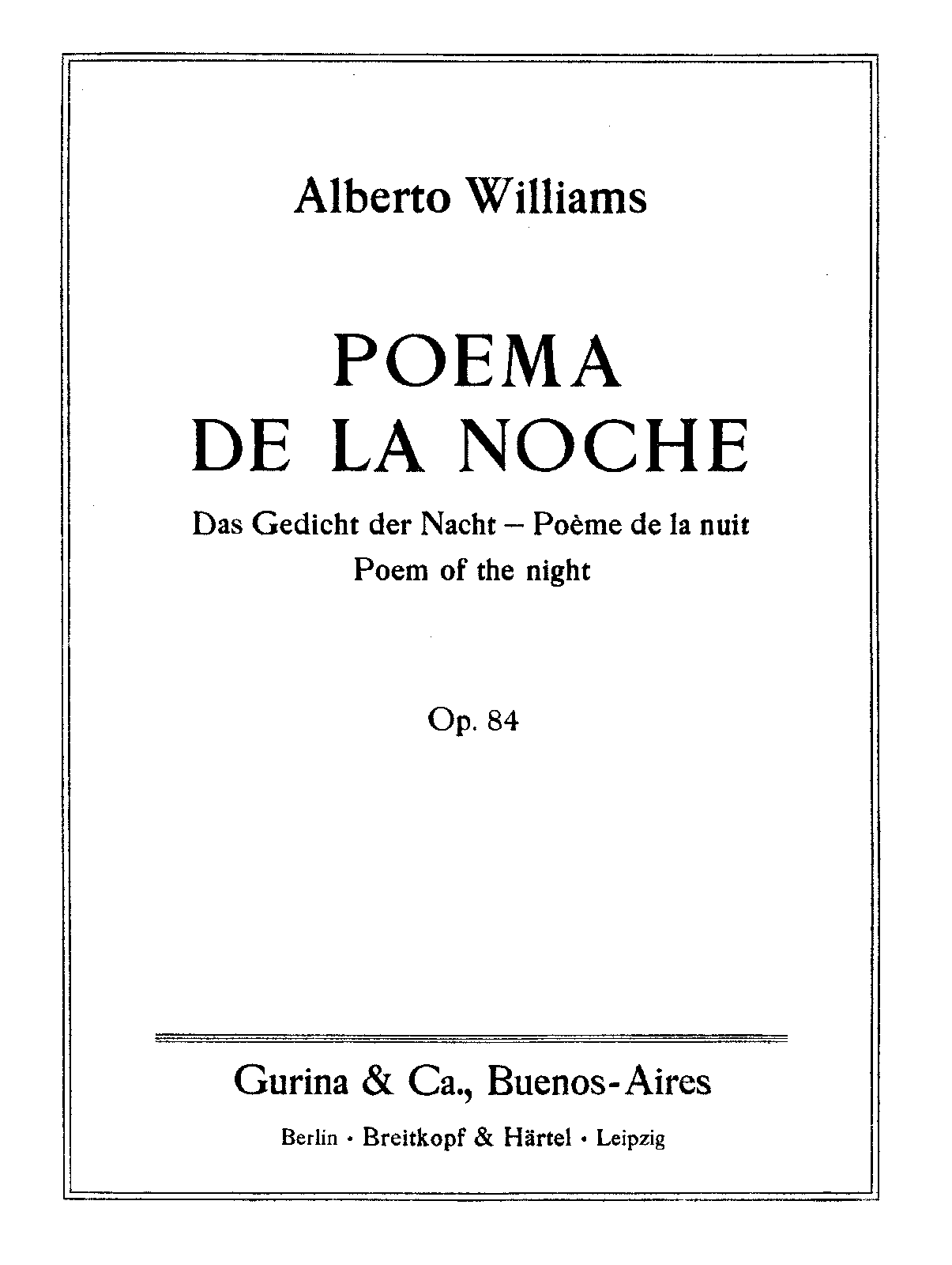 | Composer | Williams, Alberto |