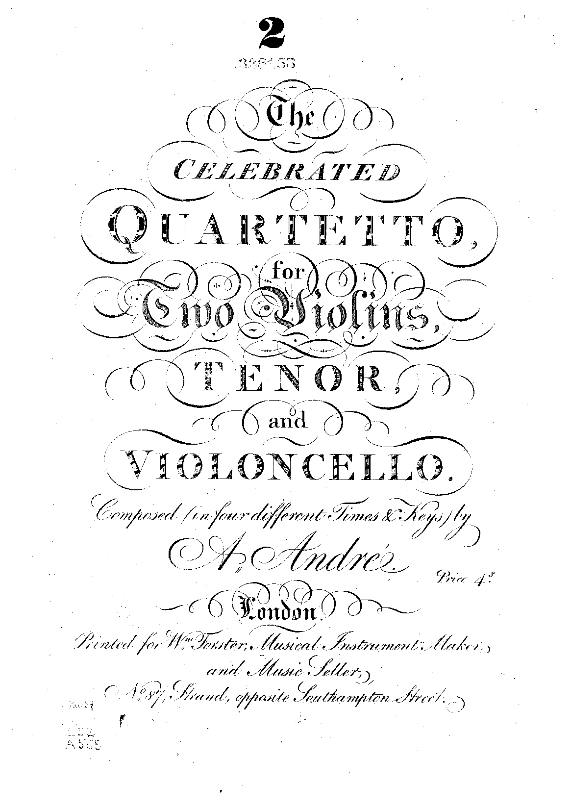 | Genre Categories | Quartets; For 2 violins, viola, cello; Scores featuring the violin; |