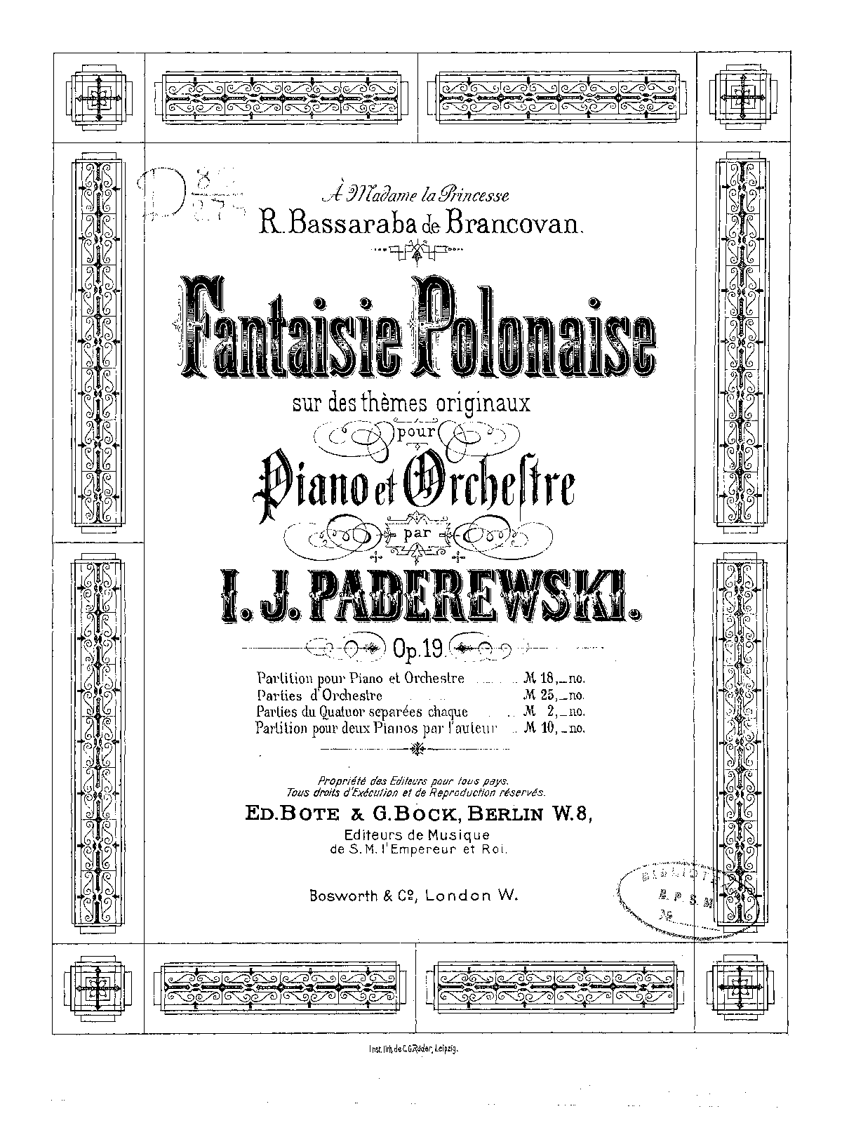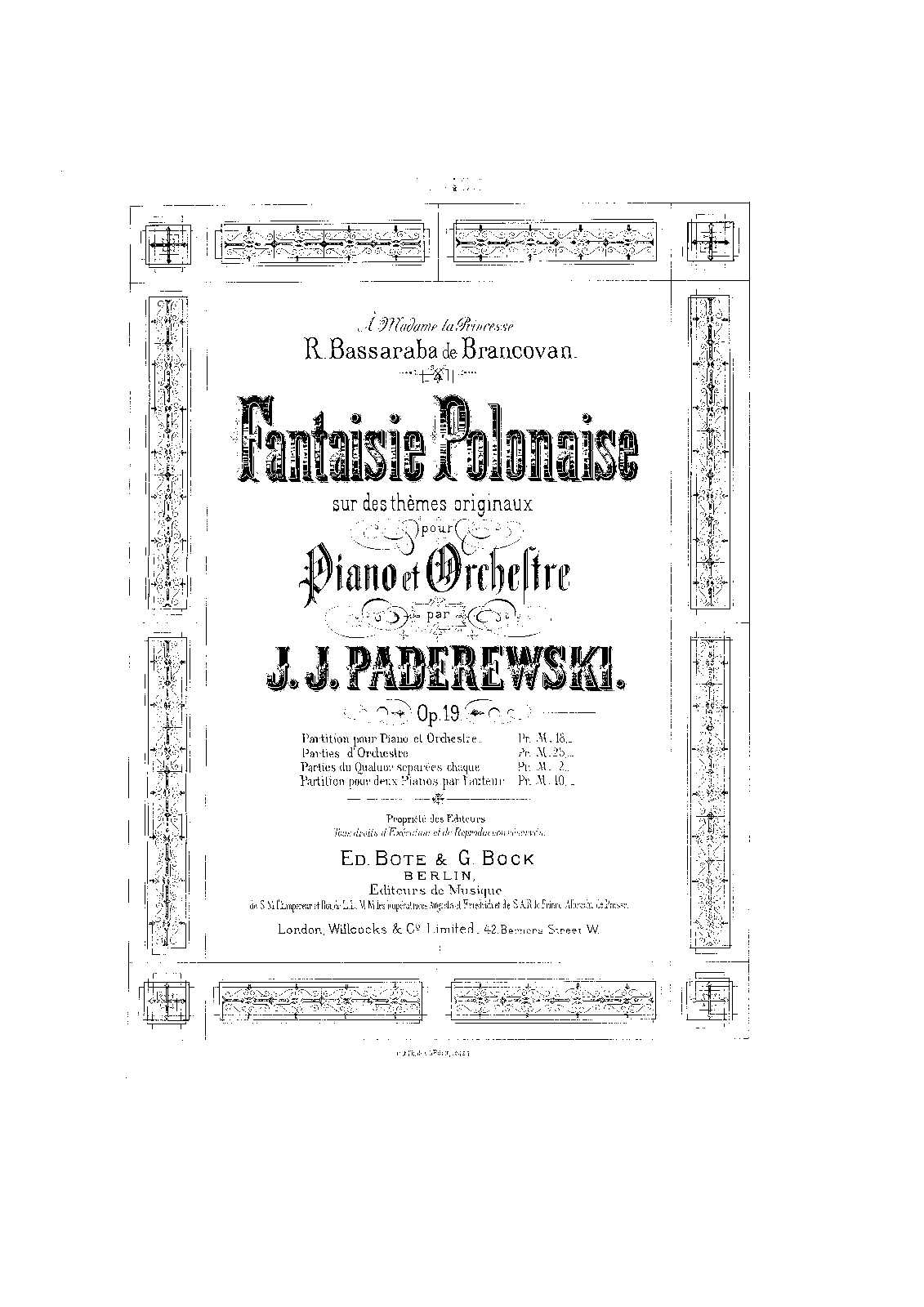 | Alternative. Title | Polish Fantasy for Piano and Orchestra Fantaisie Polonaise sur des thèmes originaux pour Piano et Orchestre, Op.19 |