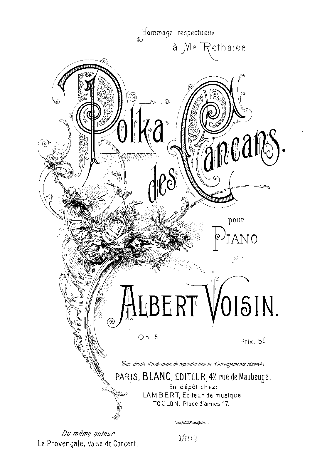 | Dedication | Hommage respectueux à Mr. Rethaler |