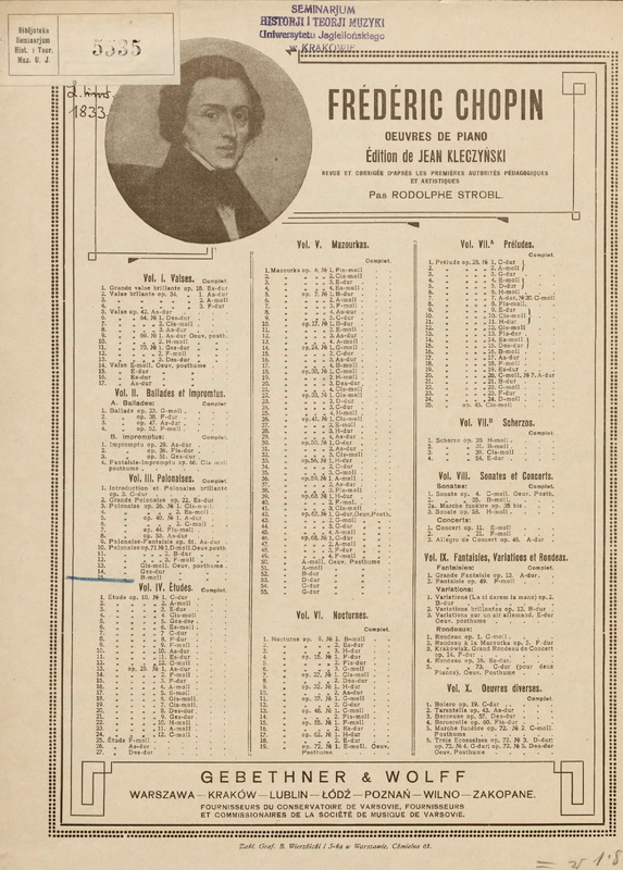 Publisher. Info. Frédéric Chopin: Oeuvres de piano, Vol.III, No.15