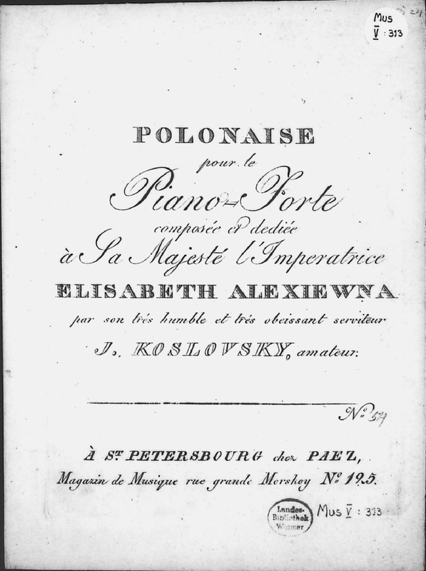 | Alternative. Title | Polonaise pour le Piano-Forte; Executee a la Mascarade au Palais de Tauride le 18 Fevrier 1816 |