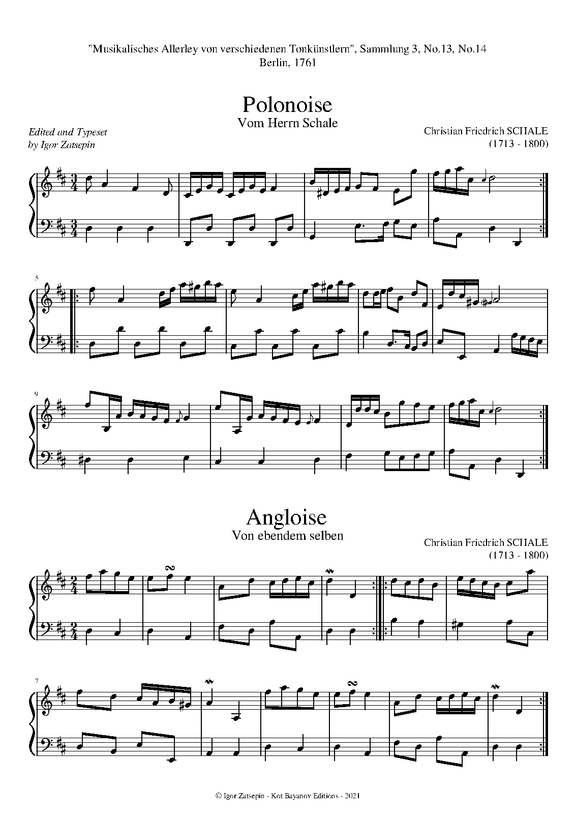 "Musikalisches Allerley von verschiedenen Tonkünstlern", Sammlung 3, No.13, No.14, Berlin, 1761