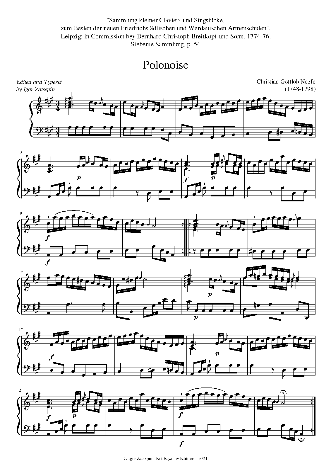 | Extra Information | "Sammlung kleiner Clavier- und Singstücke...", Breitkopf und Sohn, 1774-76 |