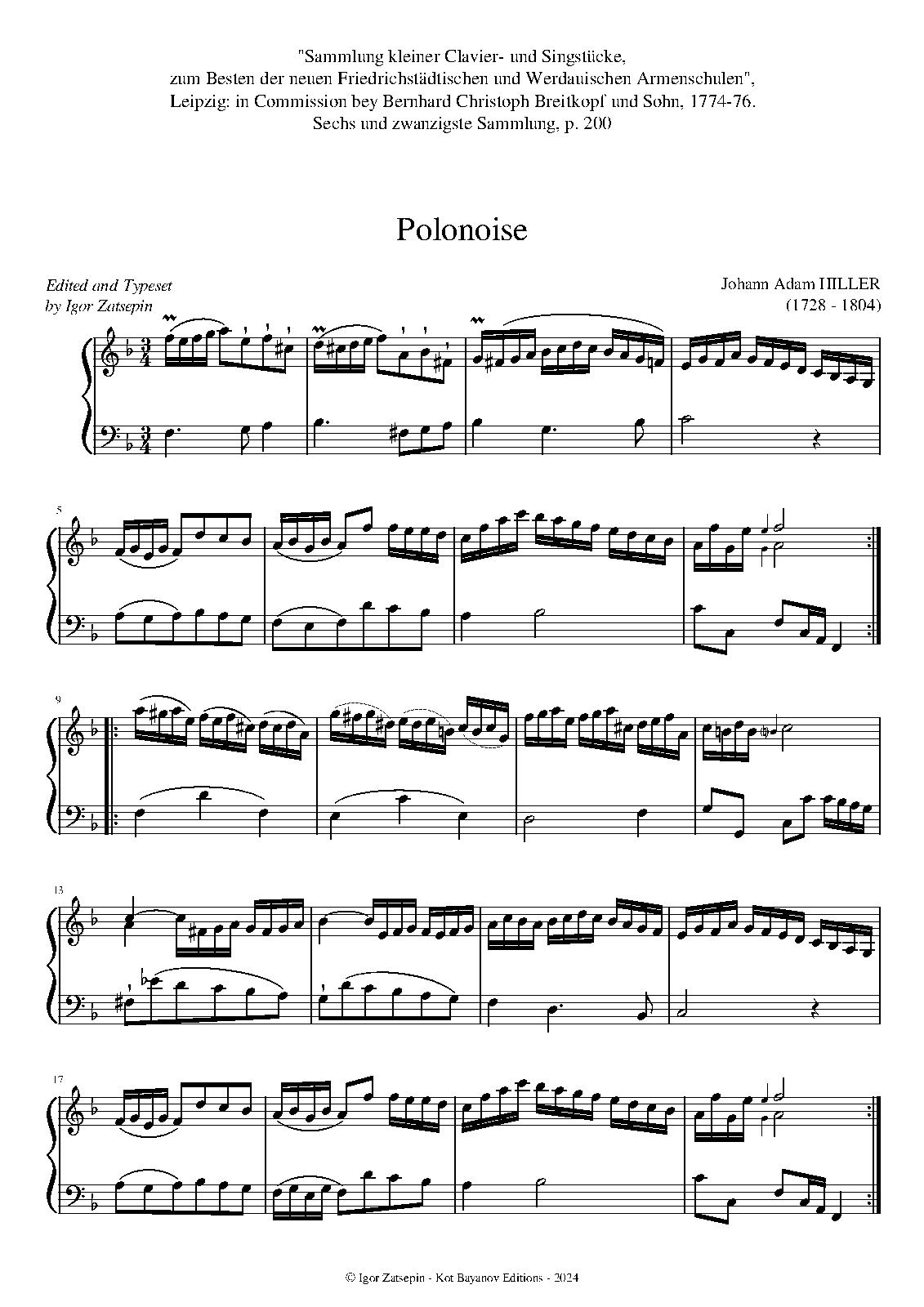| Extra Information | "Sammlung kleiner Clavier- und Singstücke...", Breitkopf und Sohn, 1774-76 |