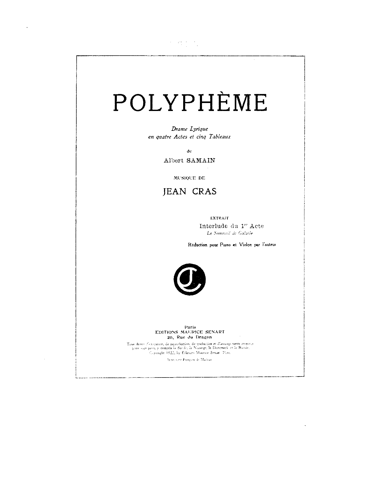 | First Publication. | 1922 – Paris: Maurice Senart (vocal score) |