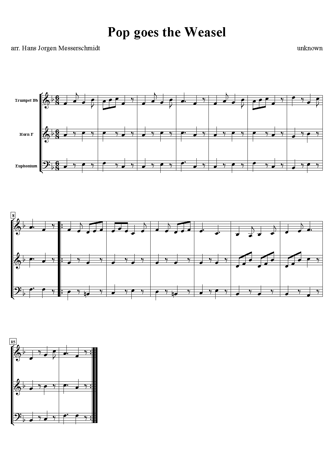 | Genre Categories | Songs; For horn, trumpet, euphonium (arr); For 3 players (arr); |