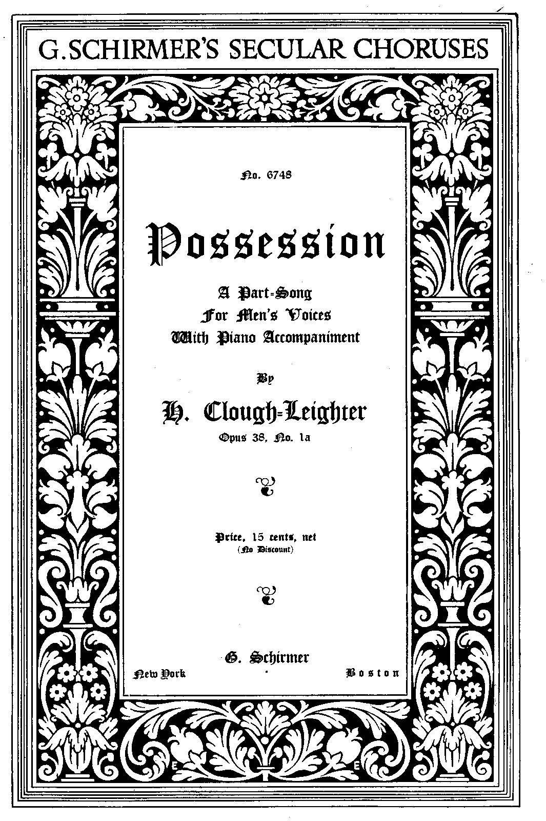 | First Publication. | 1906 – New York: Schirmer |