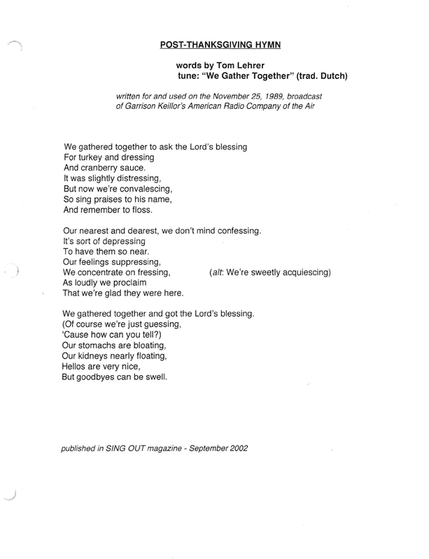 PDF typeset by tomlehrersongs.com