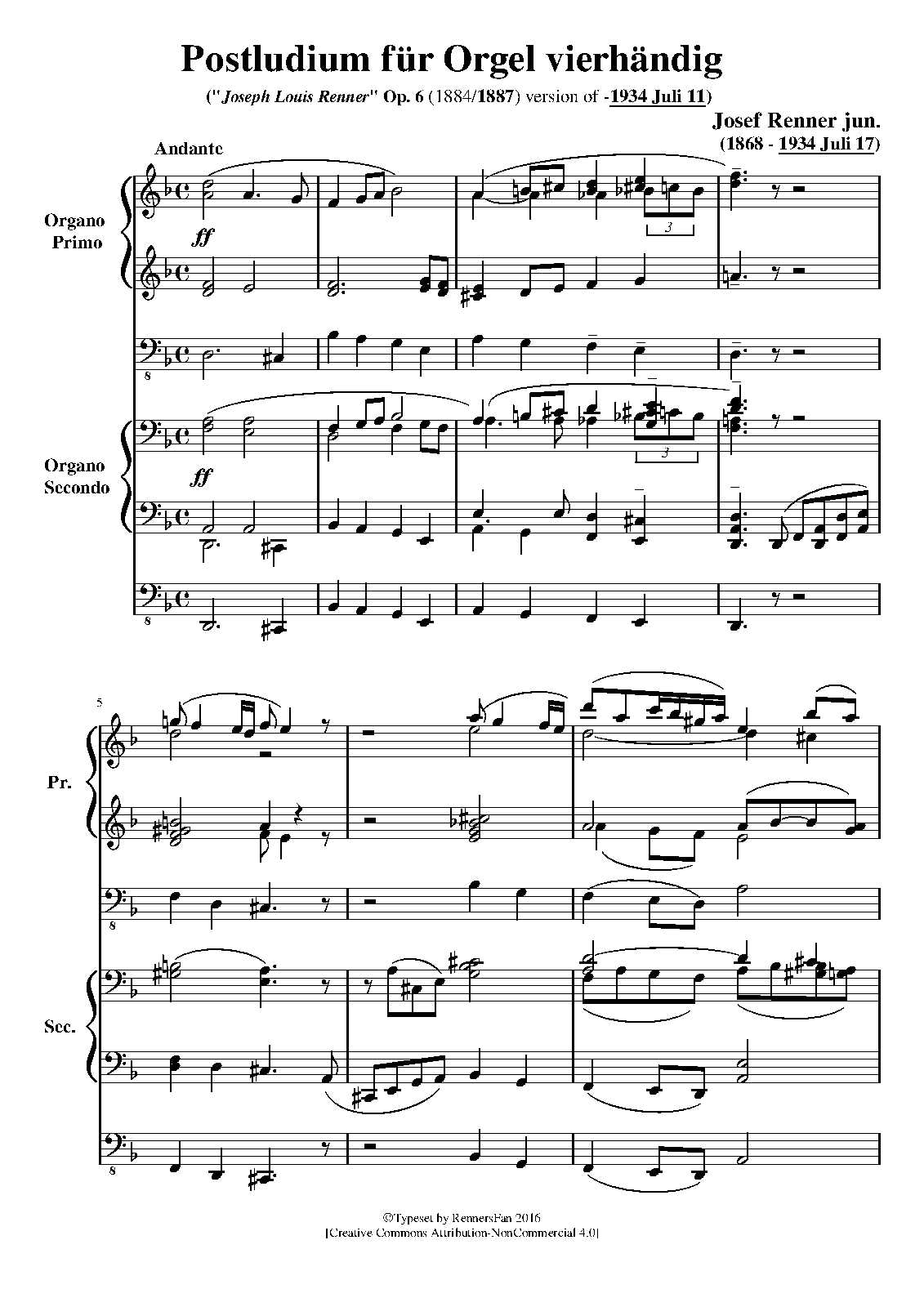 | Alternative. Title | Postludium für die Orgel zu 4 Händen |
