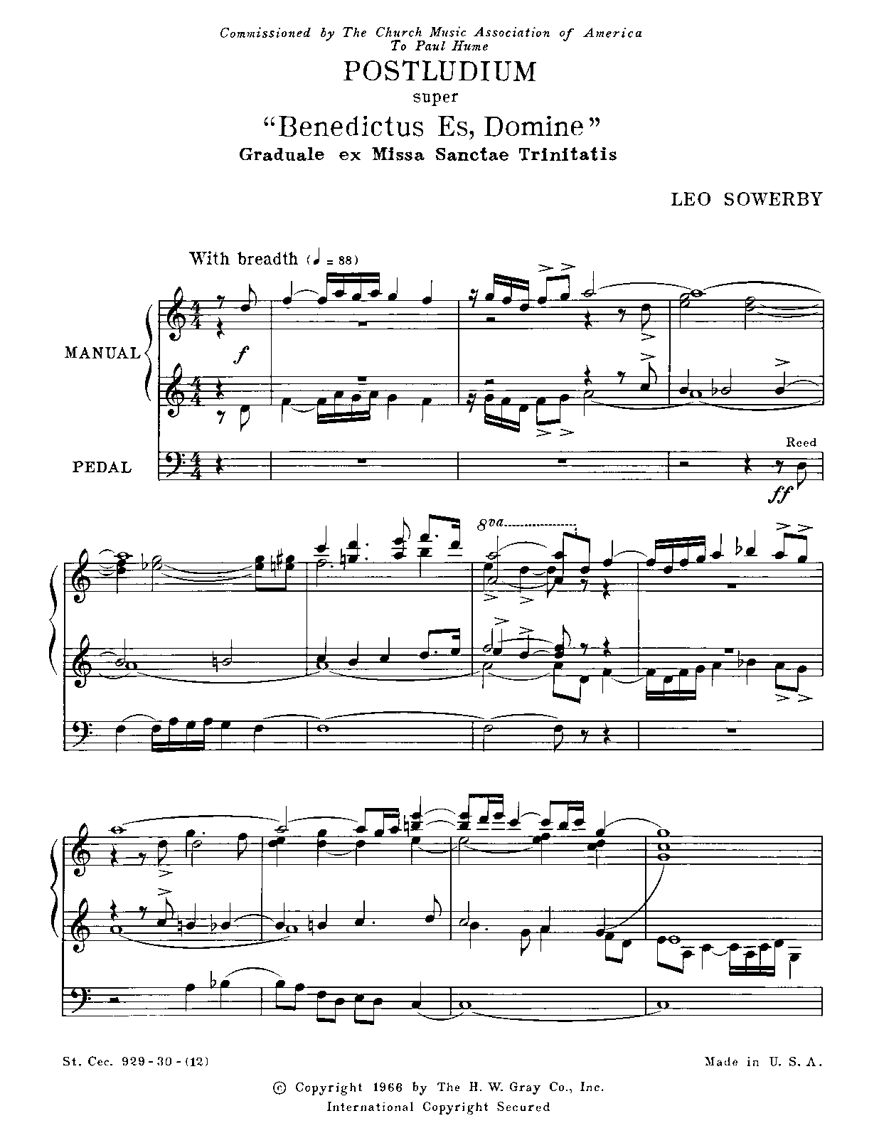 | Dedication | Commissioned by The Church Music Association of America To Paul Hume |