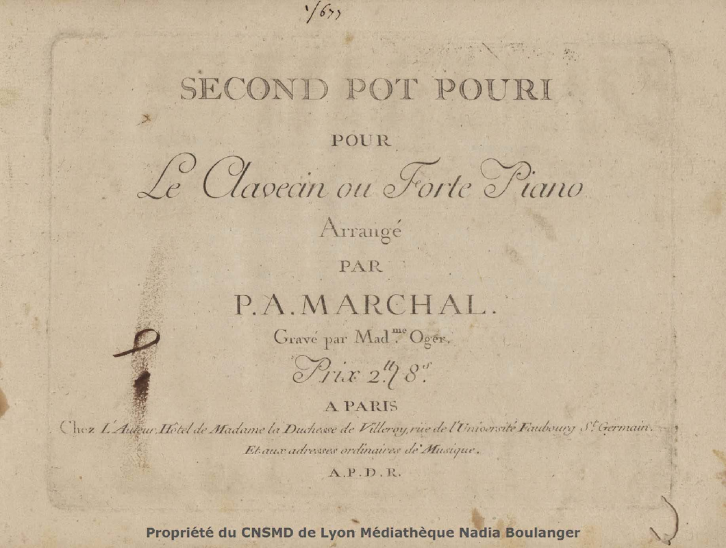 | Alternative. Title | Second Pot Pouri pour le clavecin ou forte piano |