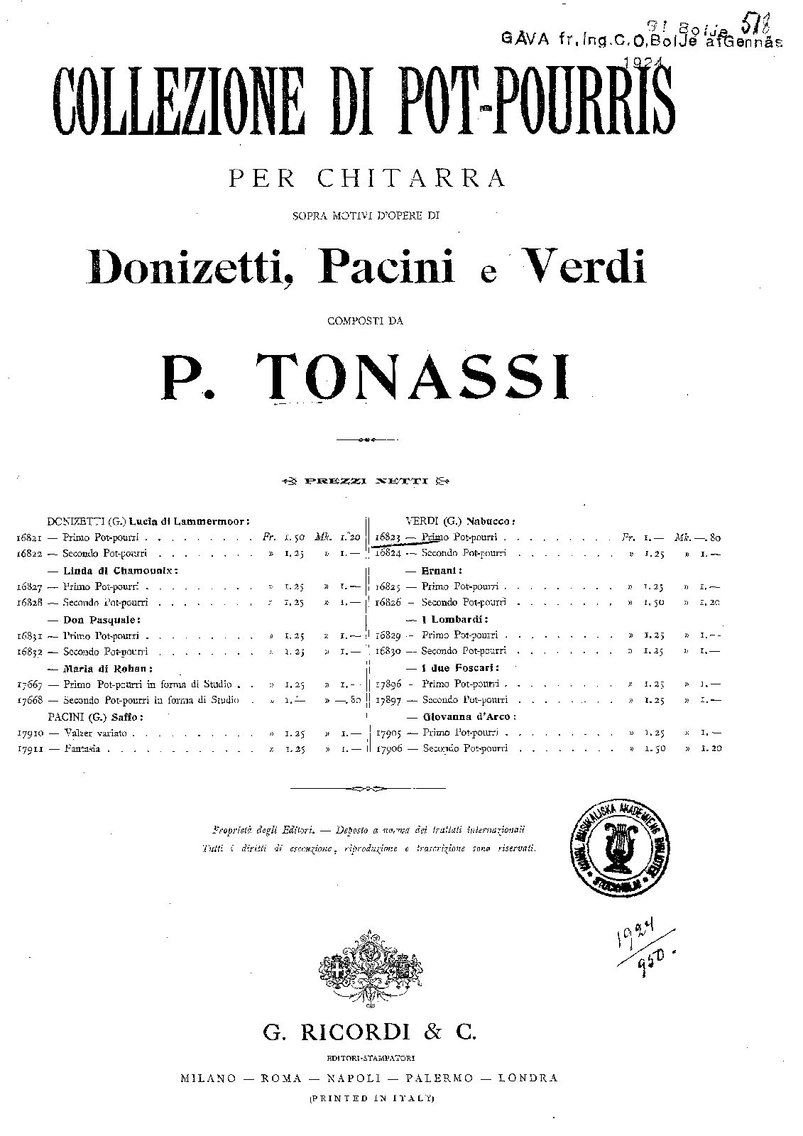 | Work Title | Pot-Pourris on Verdi's 'Nabucodonosor' |