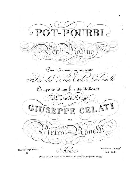 | Alternative. Title | Pot-pourri per violino con accompagnamento di due violini, viola e violoncello |