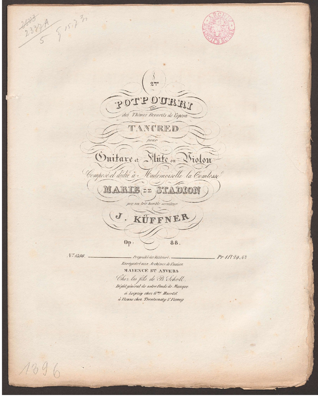 | Alternative. Title | 2me potpourri sur des Thêmes favorits de l'opéra Tancred pour Guitare et Flûte ou Violon |