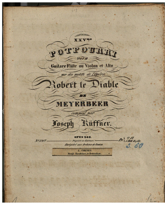 | Alternative. Title | XXVme Potpourri pour guitarre, flûte ou violon et alto sur des motifs de l'opéra Robert le Diable de Meyerbeer |