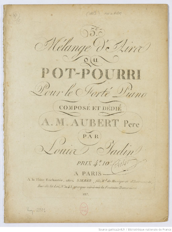 | Alternative. Title | 5e. Mélange d'Airs ou Pot-Pourri pour le forté piano; 5eme Pot-Poury |