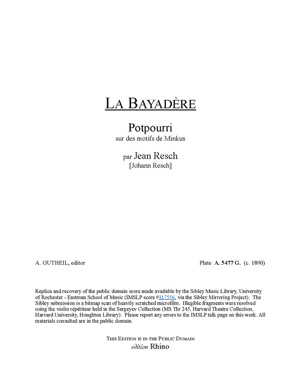 | Work Title | Bayadère. Potpourri sur des motifs de Minkus. |