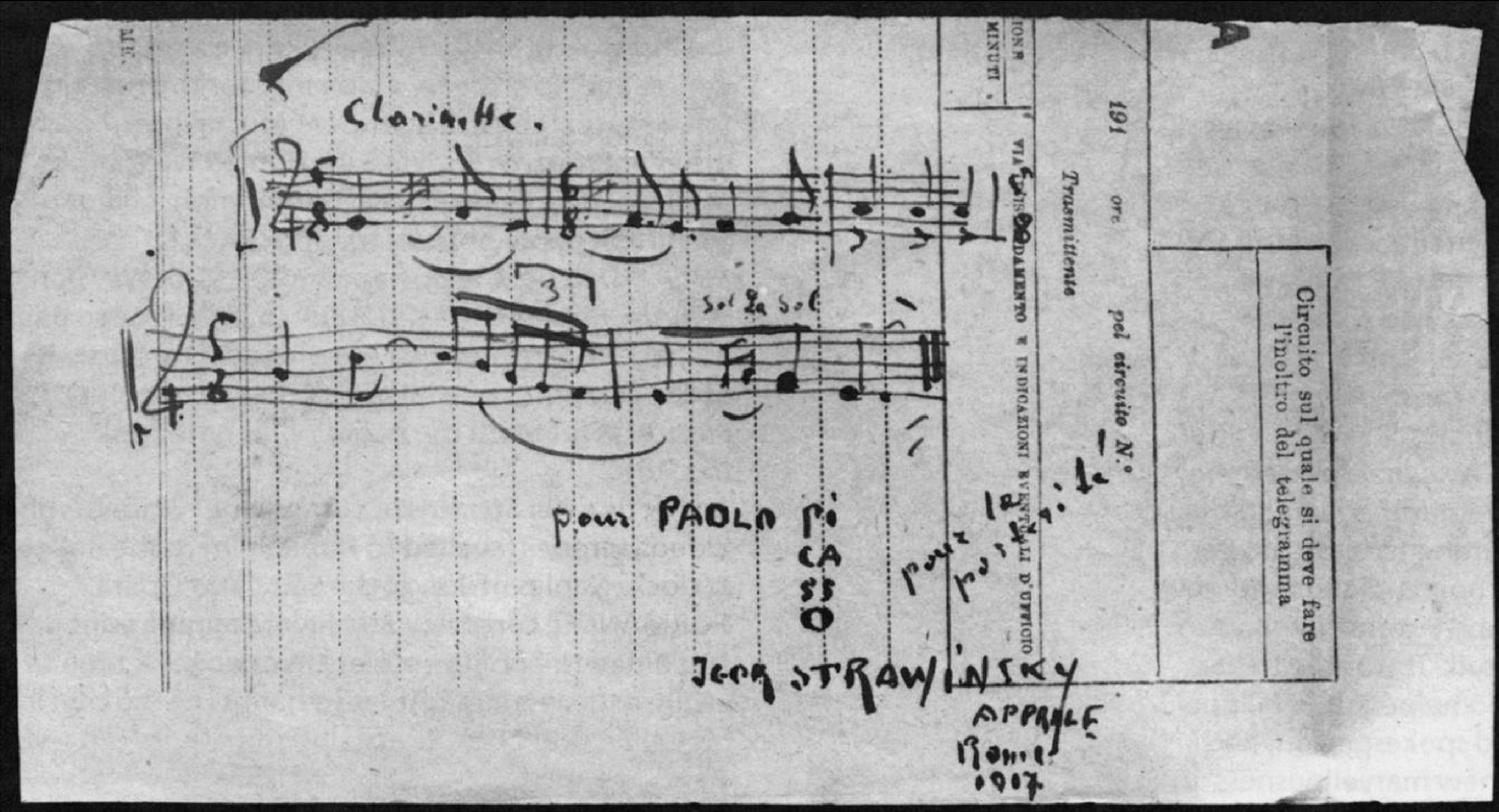 | Extra Information | Written by Stravinsky on an Italian telegram form while in Picasso's company, in April 1917. |
