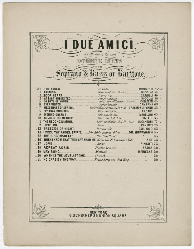 | Genre Categories | Duets; For 2 voices, piano; For voices with keyboard; |