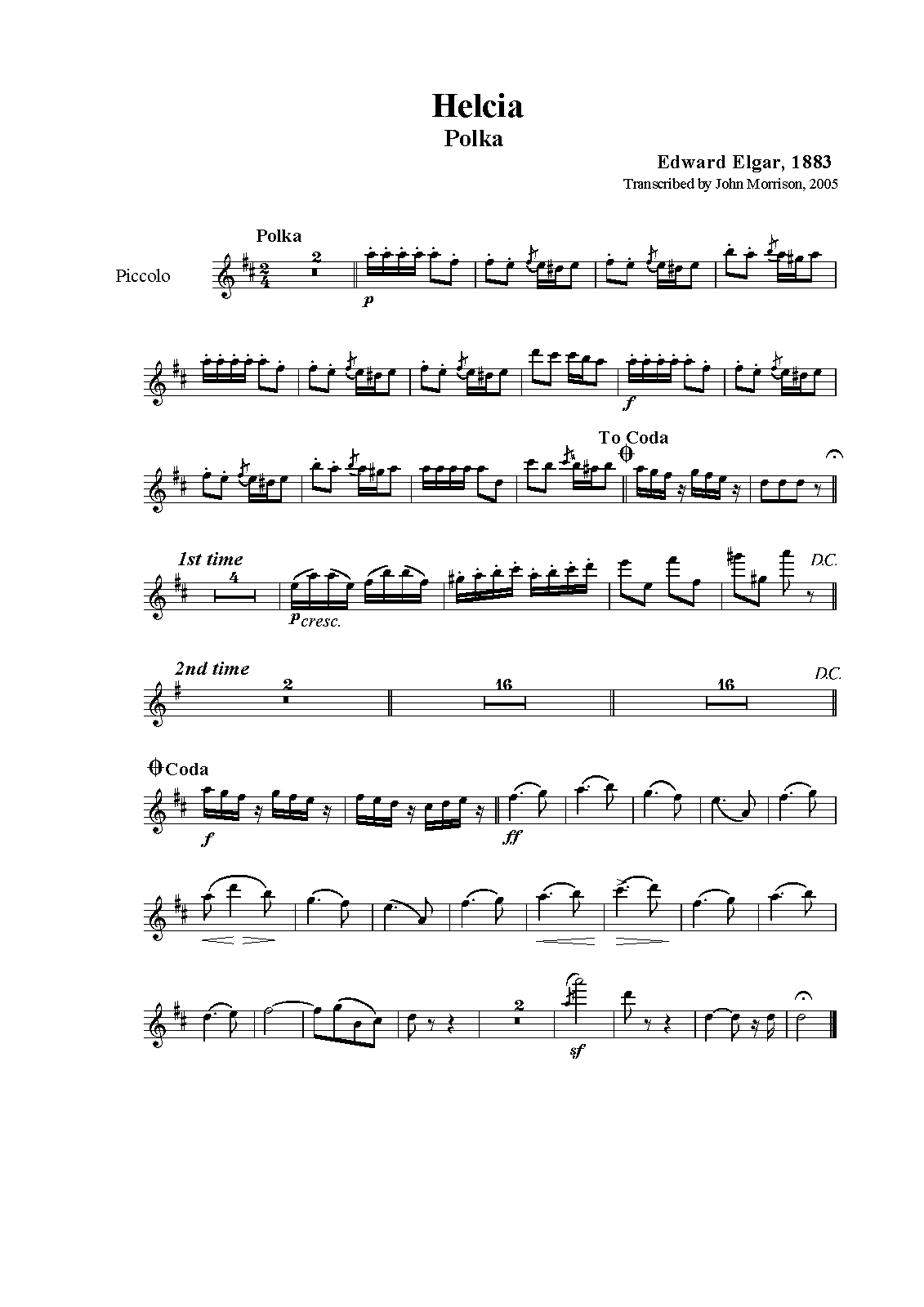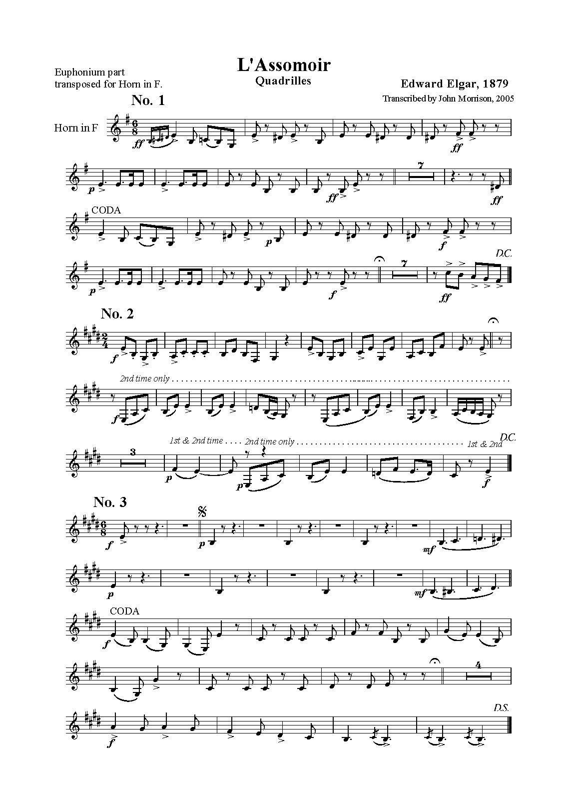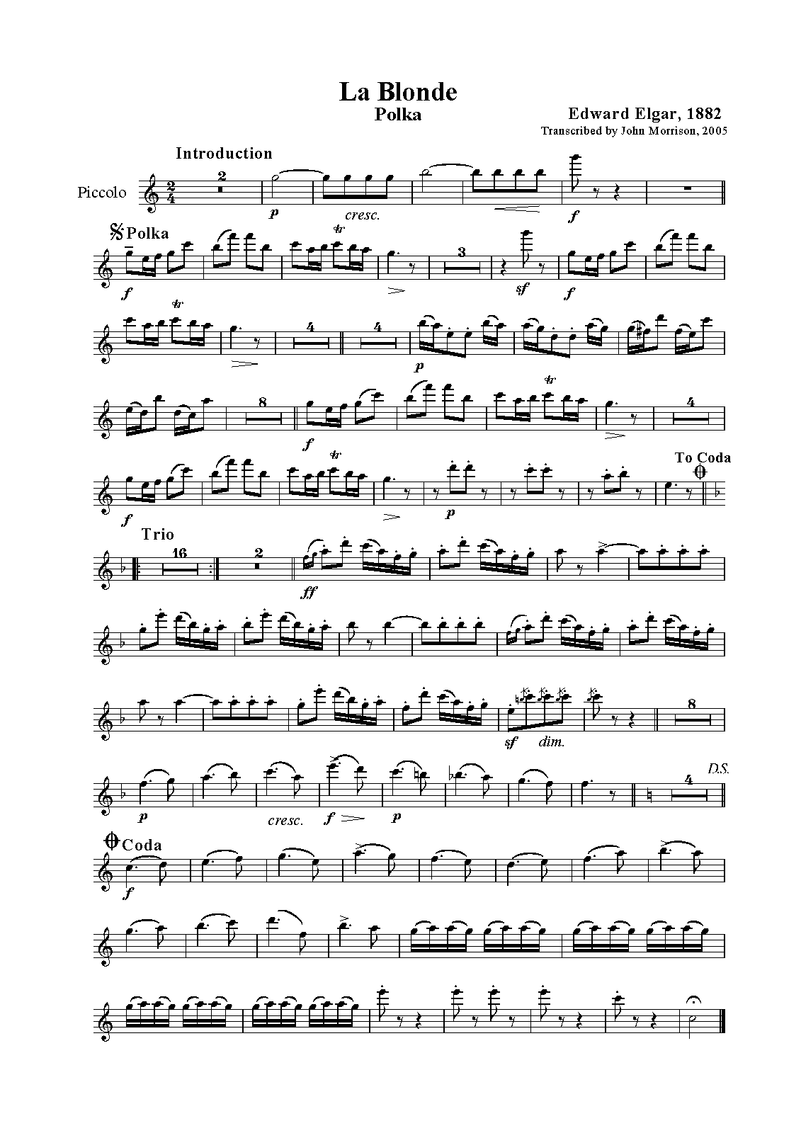 | Extra Information | Generally, the dances are scored for piccolo (and/or flute), clarinet, two cornets, euphonium (or trombone), bombardon (i.e. tuba, played bass part), piano, 1st & 2nd violins, viola (two dances only), cello and bass. Not all play in all the dances: There is no piccolo in L'Assomoir or Blumine. There is no flute in La Blonde, Helcia or Blumine. Trombone substitutes for euphonium in La Blonde. There is no euphonium in Die Junge Kokette, Helcia, La Blonde or Blumine. The viola parts are in Nelly and Helcia. |