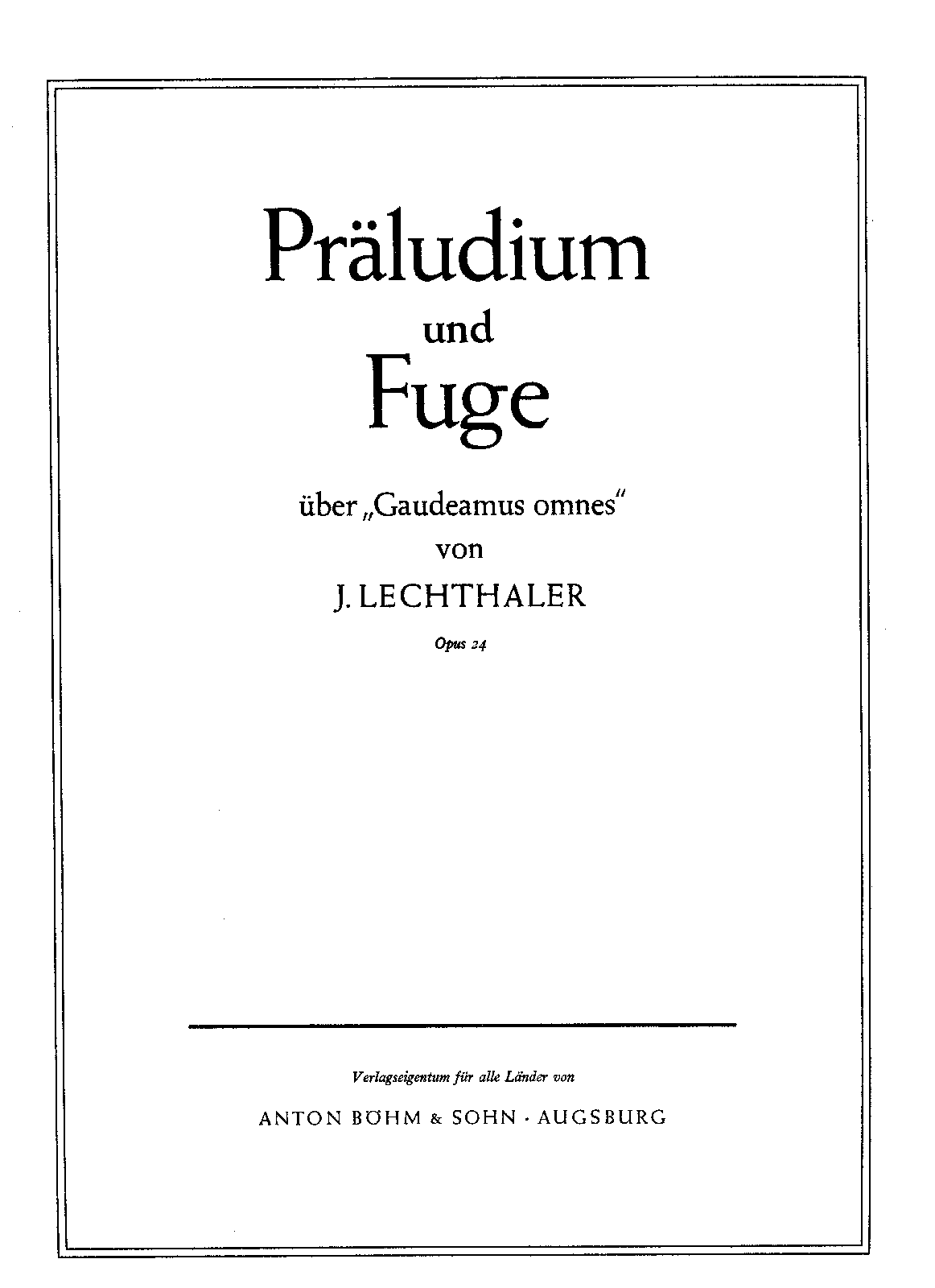 | Work Title | Präludium und Fuge über 'Gaudeamus omnes' |