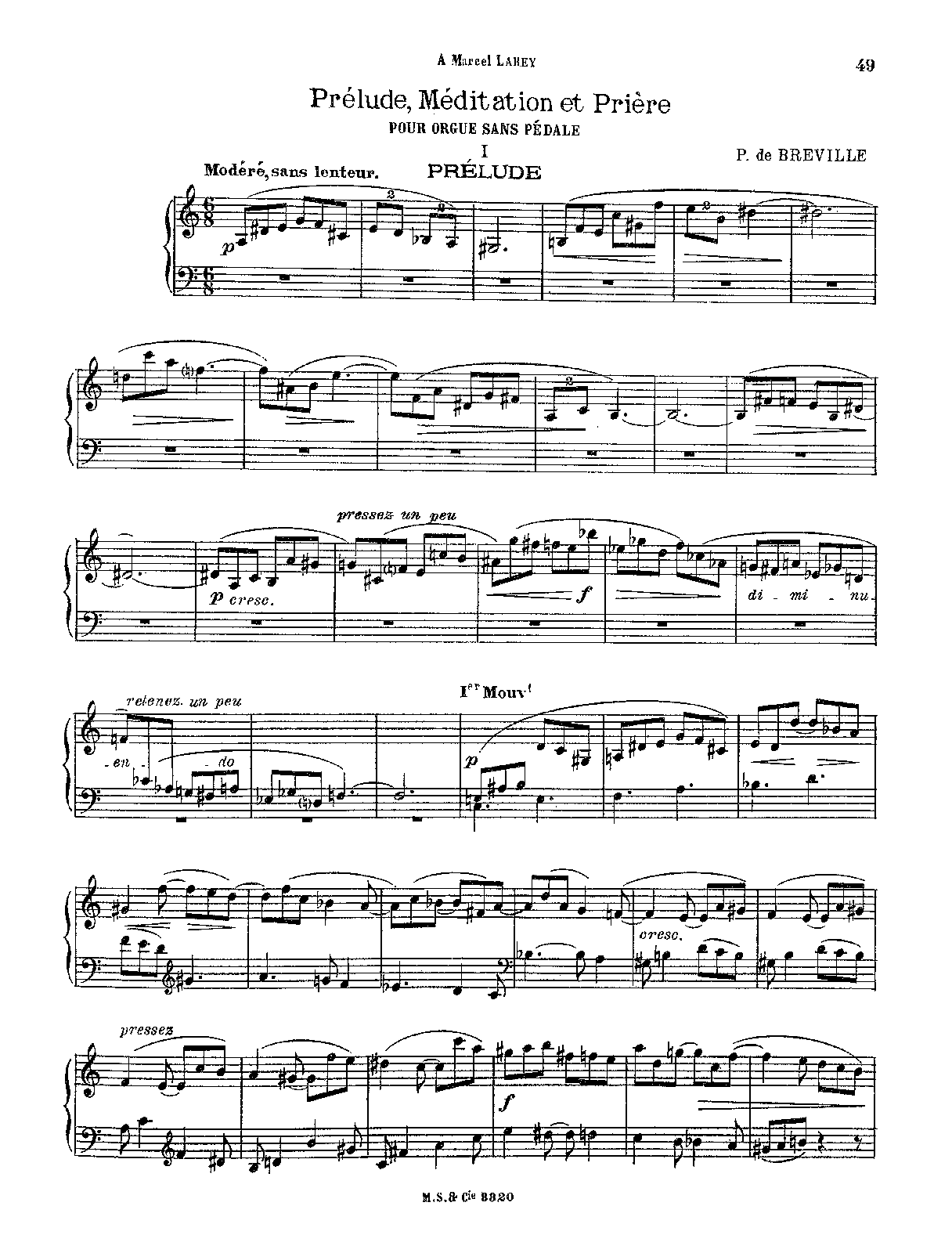 Prélude, Méditation et Prière, pour orgue sans pédale