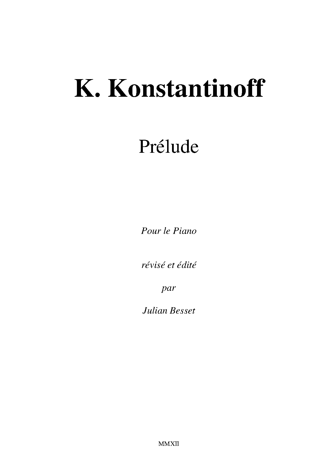 a rare instance of a "serious" (unpublished) composition for piano solo in K.K.'s production, in the manner of Scriabin. The manuscript is clearly marked in pencil, but is obviously a "suspended" composition, in the sense that, had the composer's life not been cut so short, he would certainly have taken up this composition where he left off, as certain markings seem to indicate some hesitations on the part of the composer regarding the measure ordering. Accordingly two versions are proposed.
