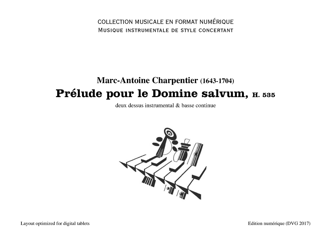 Grove Music lists the treble instruments as strings. The setting of Domine salvum for which this prelude was written is lost.