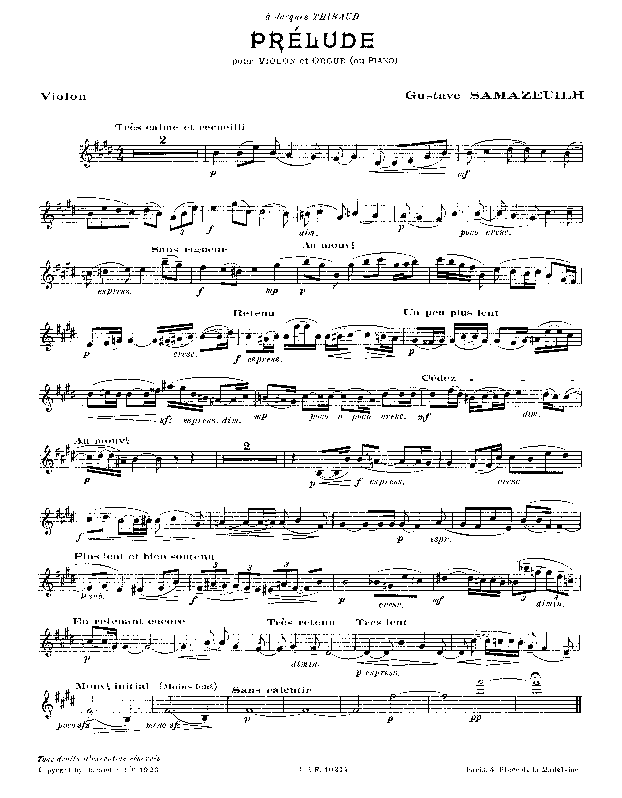 NB. This is an original work composed for his friend, the French violin virtuoso Jacques Thibaud, apparently yet unbeknownst to Grove's.