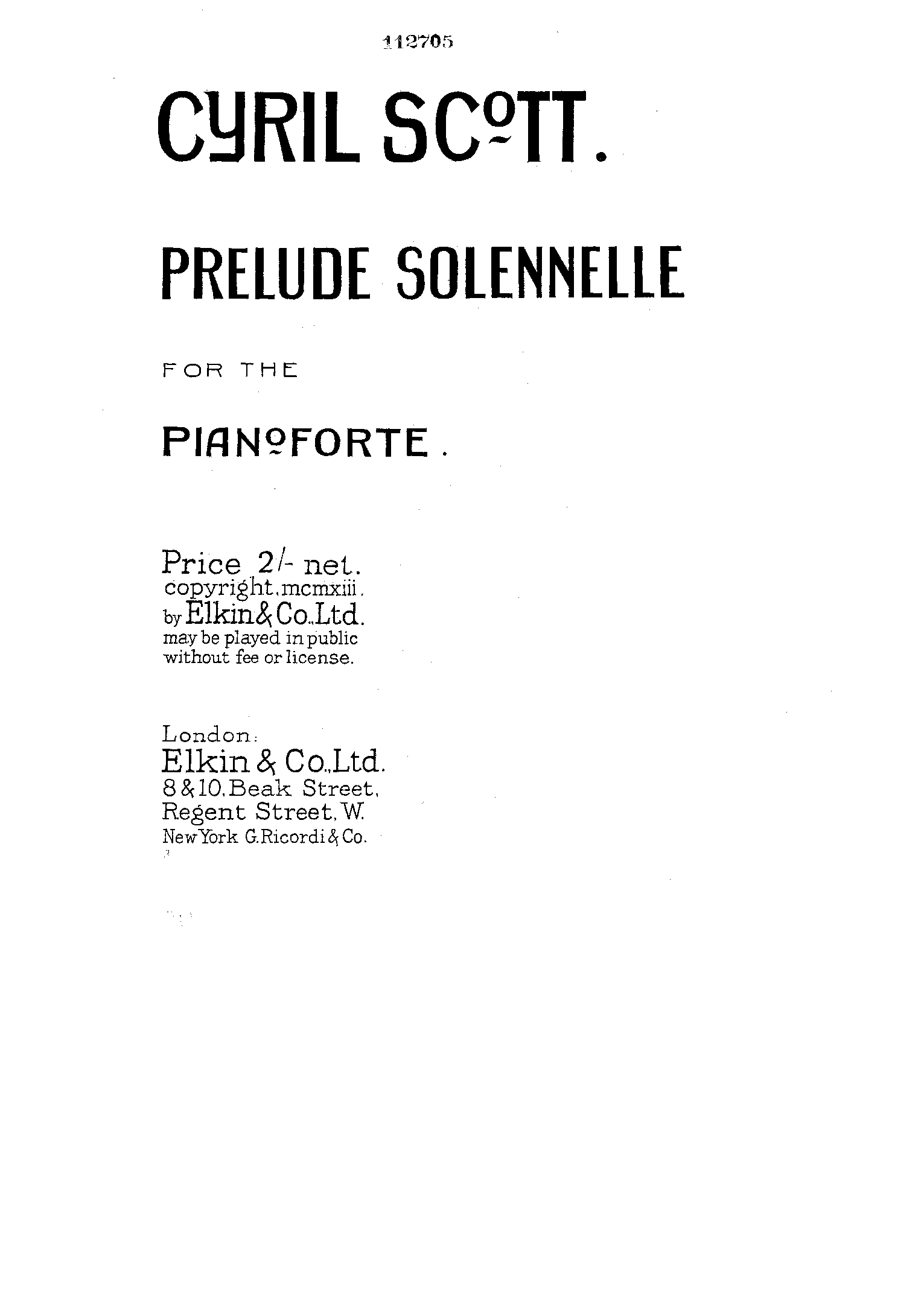 Publisher. Info. London: Elkin & Co., 1913. Plate E. & Co. 719.