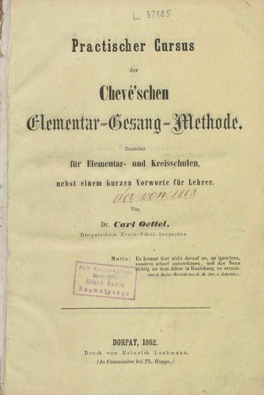 Practischer Cursus der Chevé’schen Elementar-Gesang-Methode. Zunächst für Elementar- und Kreisschulen, nebst einem kurzen Vorworte für Lehrer