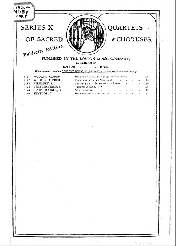 | Extra Information | Possibly a movement from a bigger composition, but not the same as "Praise Ye the Name of the Lord" from All-Night Vigil, op.26. |