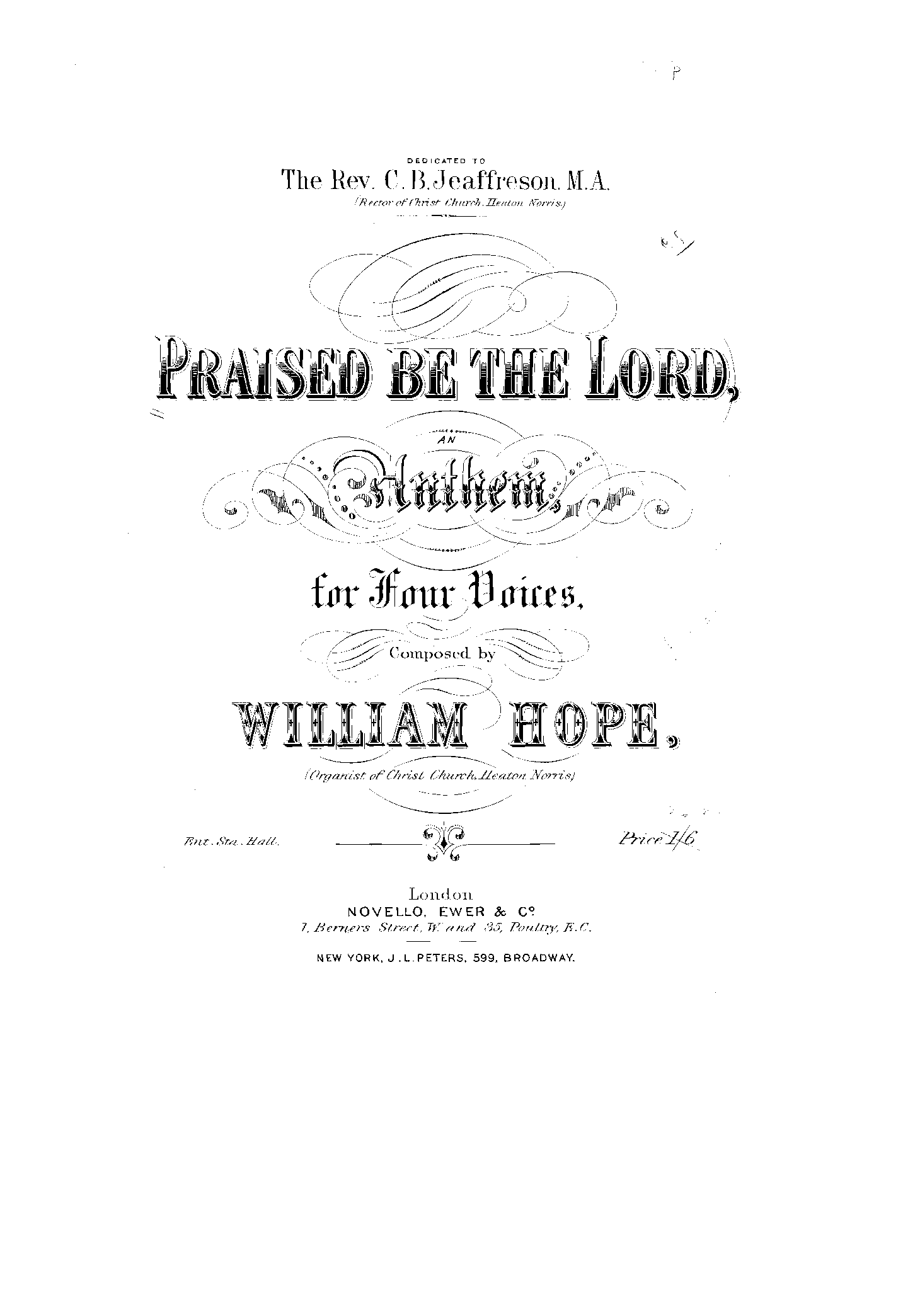 | Alternative. Title | Praised be the Lord, an anthem for four voices composed by William Hope, (organist at Christ Church, Heaton Norris) |
