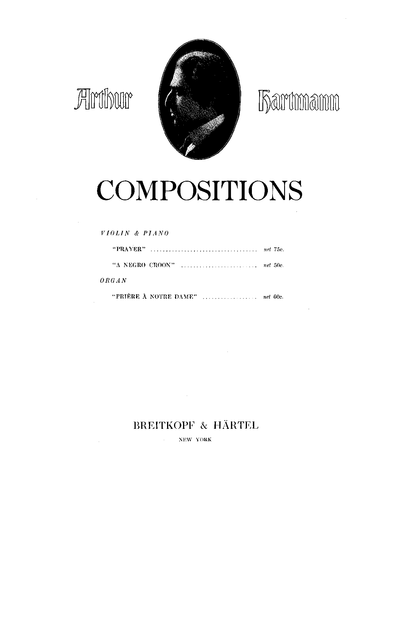 Publisher. Info. New York: Breitkopf und Härtel, 1916. Plate Prayer.