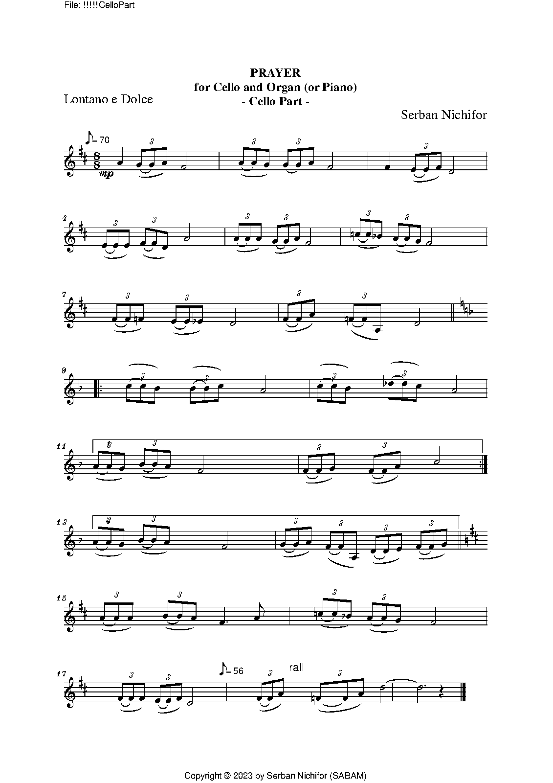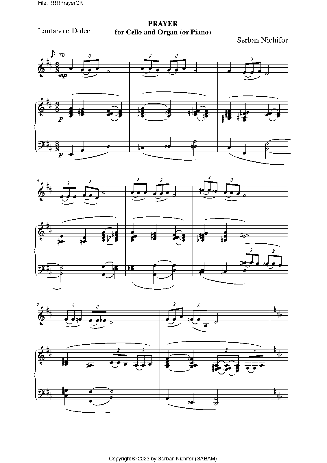 | Work Title | Prayer for Cello and Organ (or Piano) |