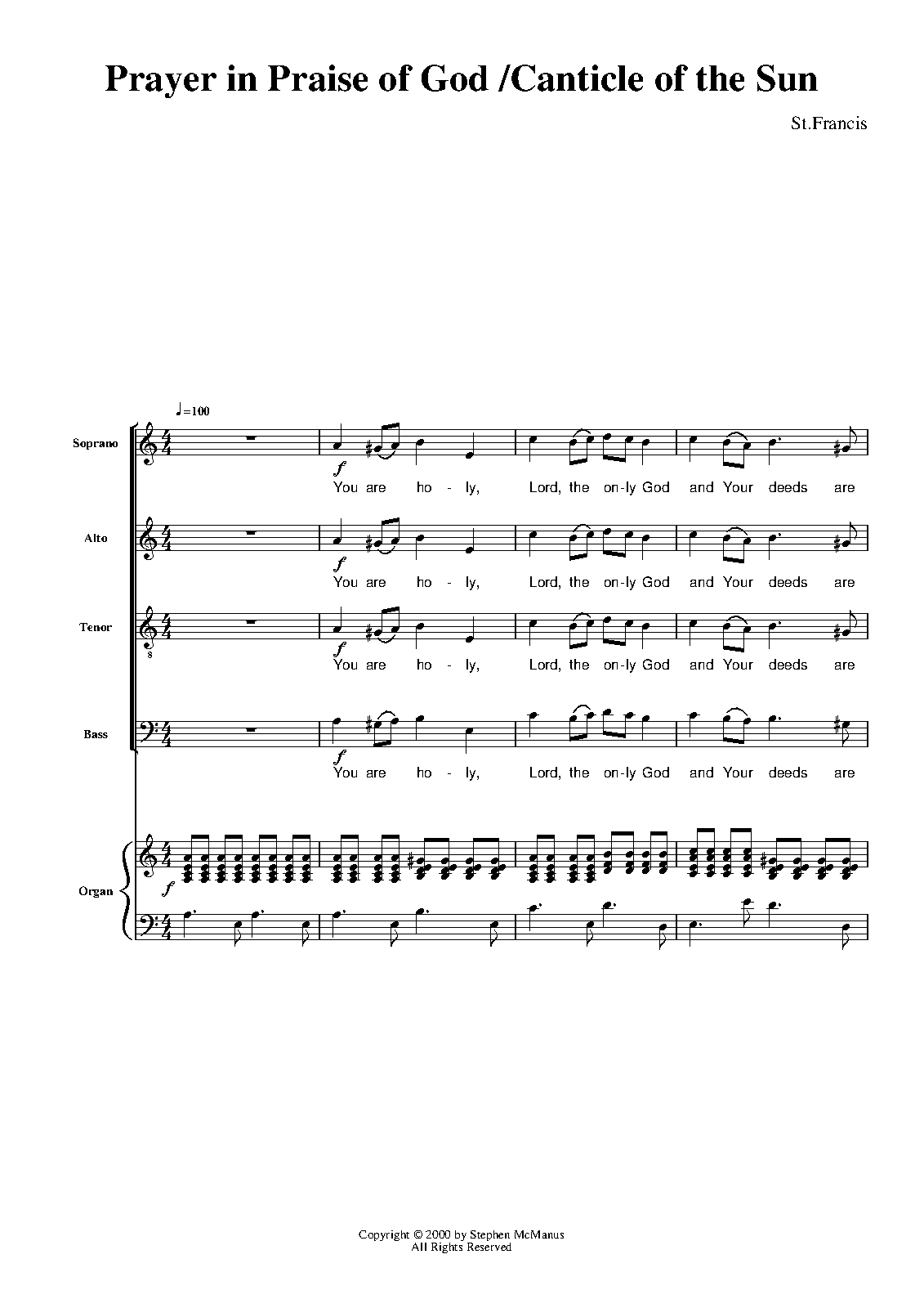 | Work Title | Prayer in Praise of God and Canticle of the Sun |