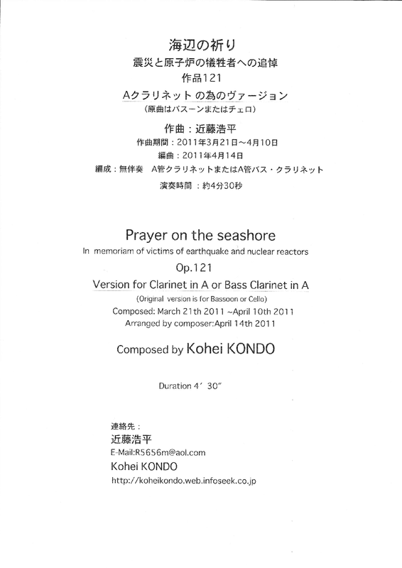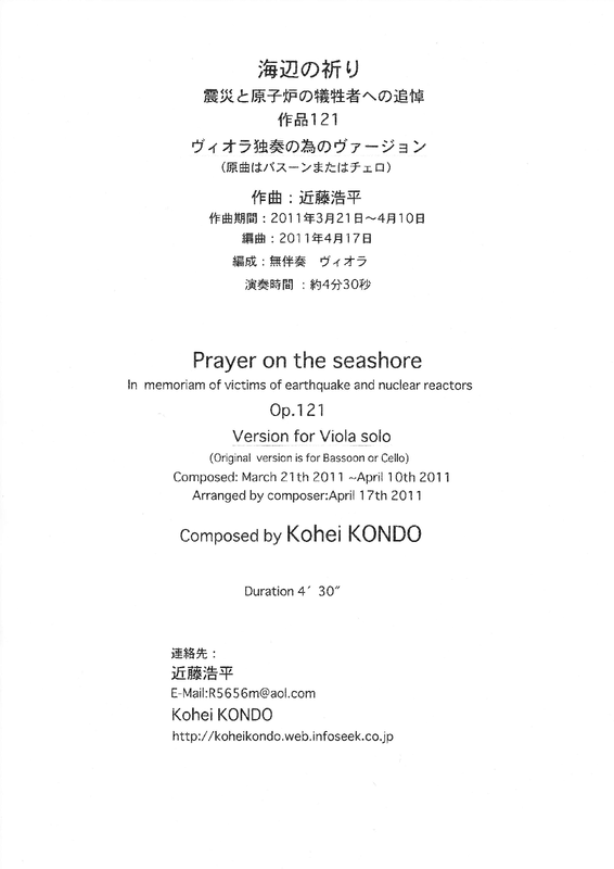 Prayer on the Seashore, In memoriam of victims of earthquake and nuclear reactors op.121