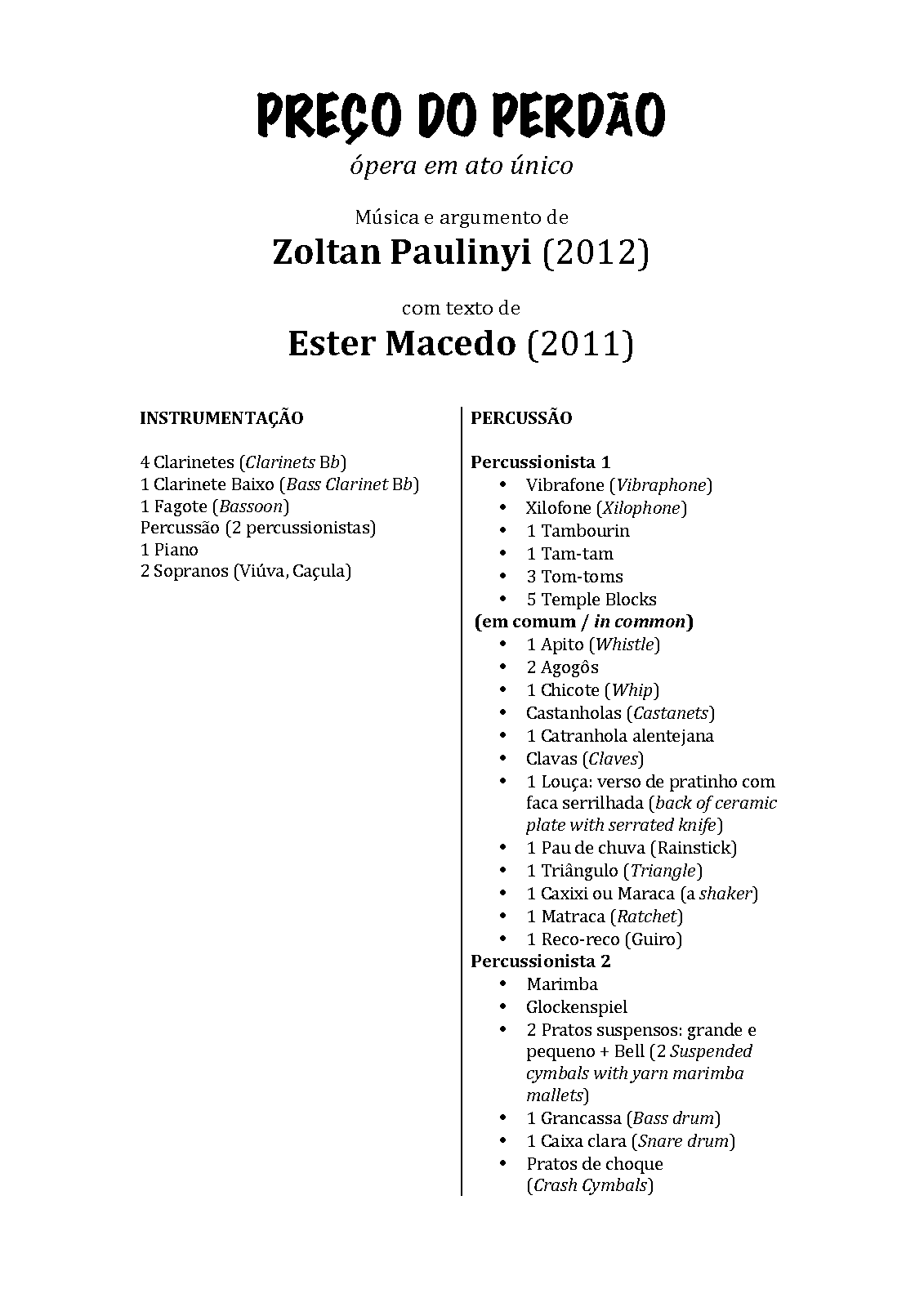 Instrumentation 2 sopranos, 4 clarinets, bass clarinet, bassoon, percussion (2 players), piano