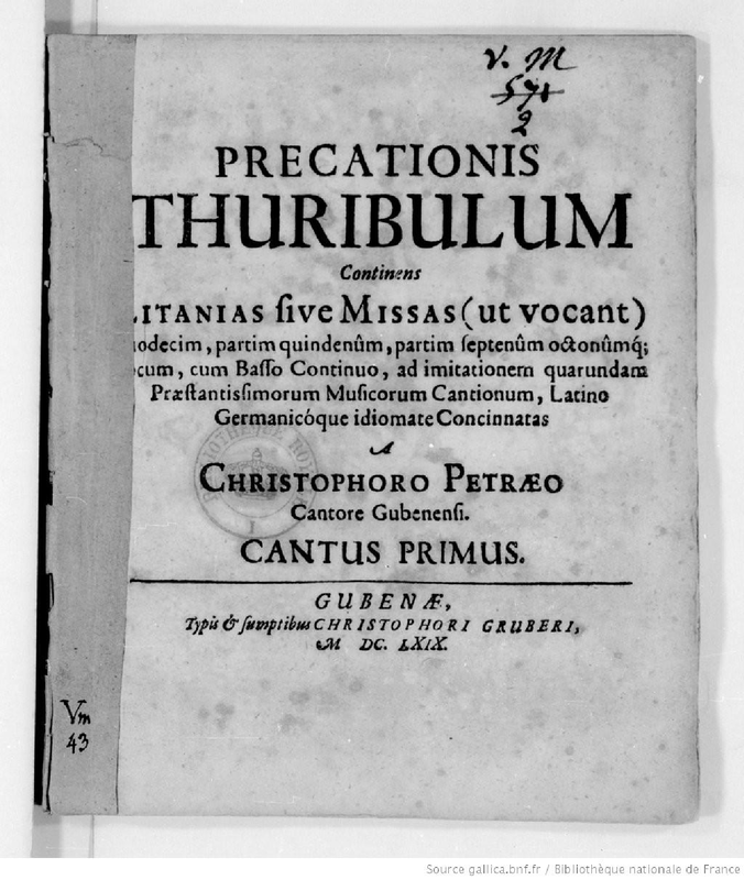 - Bonifazio Graziani, Missa super Intende Domine (German text: O Herr erbarm dich über uns. - 3 voices, 2 viols di gamba or trombones)