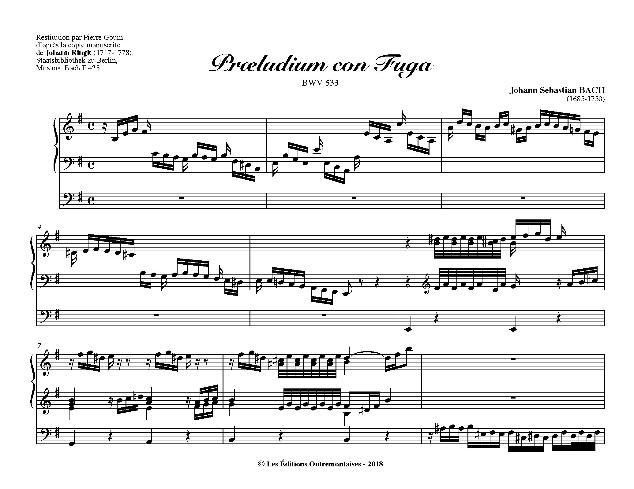 Opus/Catalogue NumberOp./Cat. No. BWV 533 ; BC J 18