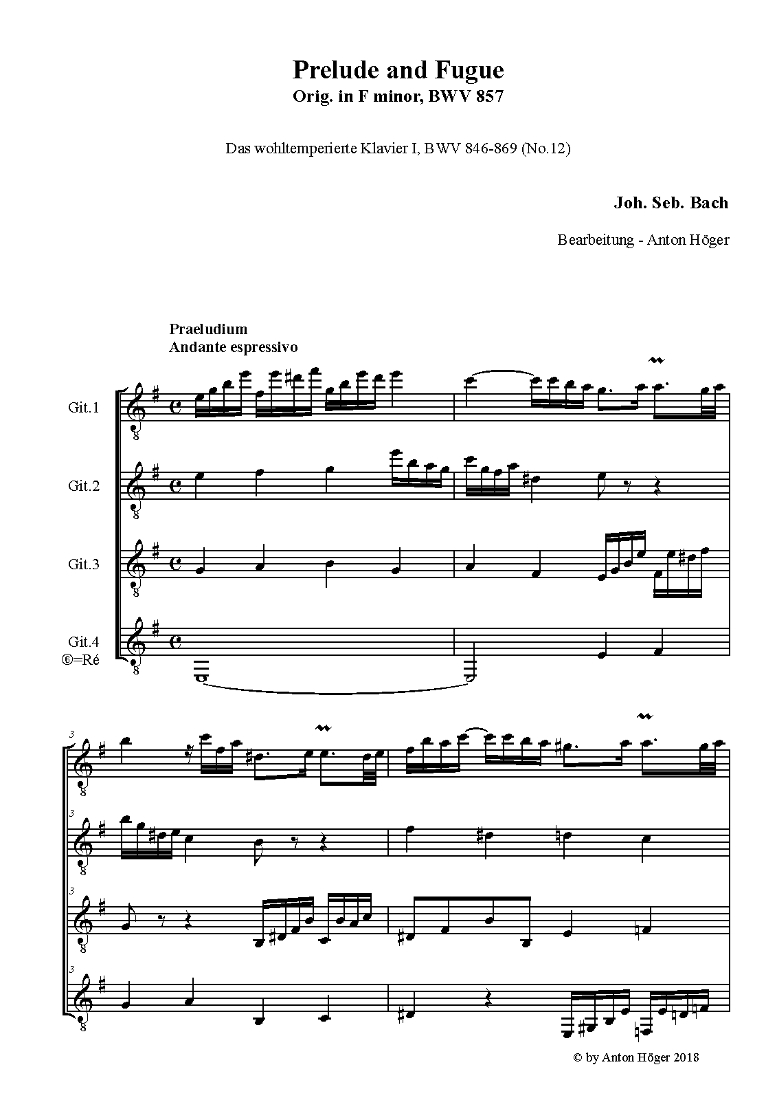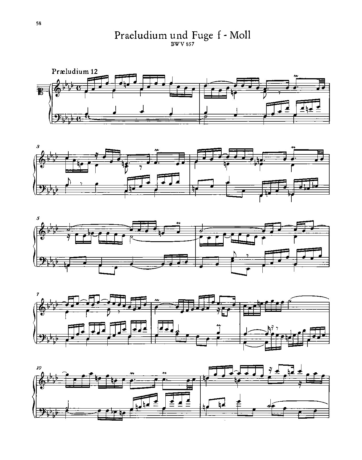 Name Translations Präludium und Fuge f-moll BWV 857; Präludium und Fuge f-Moll BWV 857; Prélude et fugue en fa mineur (BWV 857); Прелюдия и фуга фа минор, BWV 857; Preludium i Fuga f-moll BWV 857; Preludi i fuga en fa menor (BWV 857)