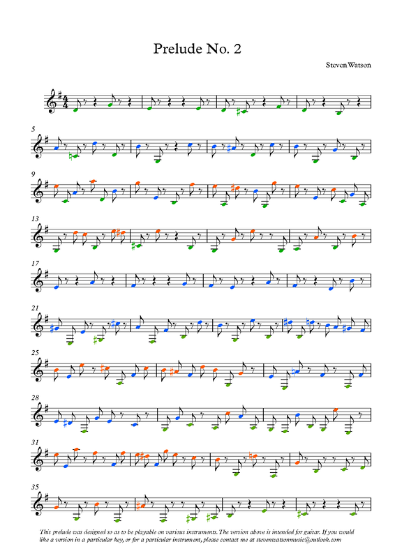 | Extra Information | This prelude was designed so as to be playable on various instruments. The version above is intended for guitar. If you would like a version in a particular key, or for a particular instrument, please contact me. |