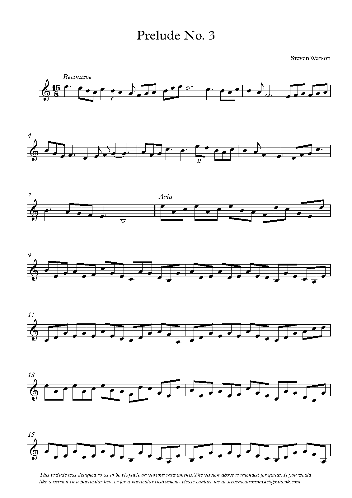 | Extra Information | This prelude was designed so as to be playable on various instruments. The version above is intended for guitar. If you would