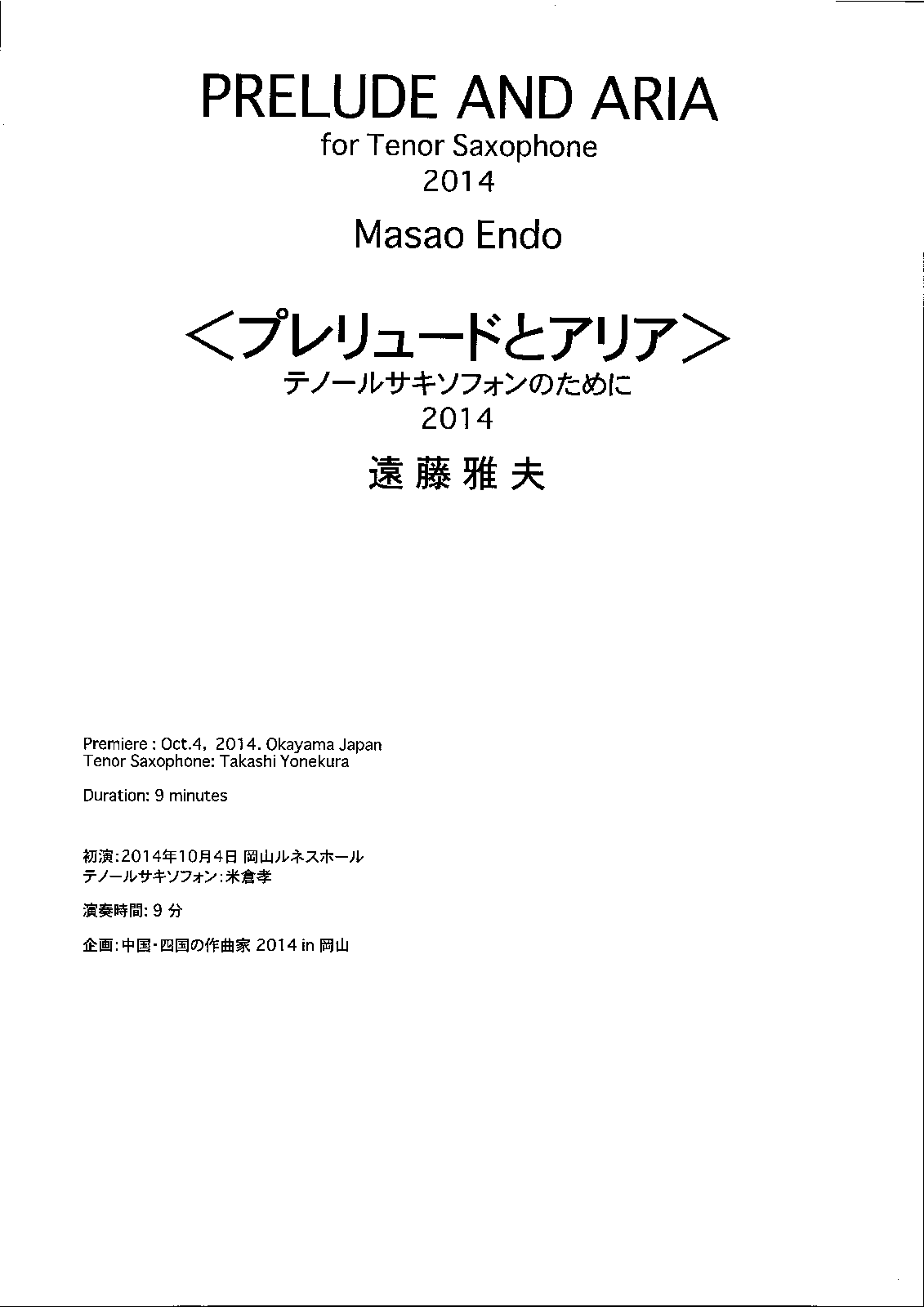 | Work Title | Prelude and Aria for Tenor Saxophone |